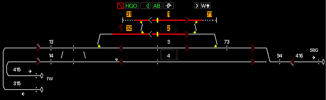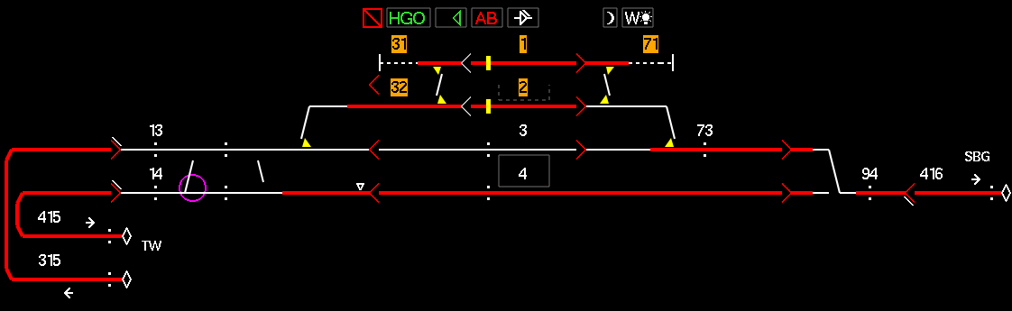 Der Hauptrechner befindet sich am grössten Bahnhof der Strecke in Speicher, wo die Anlage auch mehrheitlich mit Zwergsignalen ausgerüstet ist.